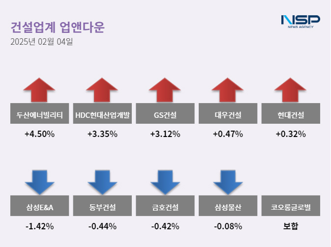 (서울=NSP통신) 정현우 기자 = 4일 코스피(1.13%)와 코스닥(2.29%)은 모두 상승했다. 건설주는 전 거래일 대비 0.99% 상승했고 80종목 가운데 54종목이 상승, 16종목이 하락했다. 보합세는 10종목이다.