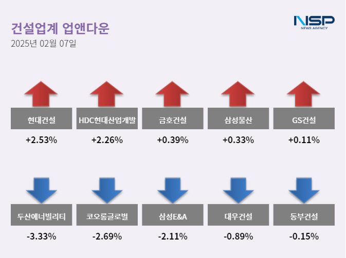 (서울=NSP통신) 정현우 기자 = 7일 코스피(-0.58%)는 하락, 코스닥(0.35%)은 상승했다. 건설주는 전 거래일 대비 0.37% 상승했고 80종목 가운데 25종목이 상승, 45종목이 하락했다. 보합세는 10종목이다.