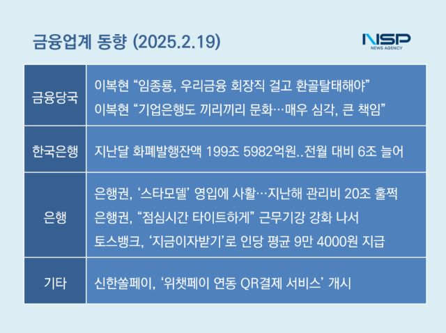 (서울=NSP통신) 강수인 기자 = 이복현 금융감독원장이 우리은행과 IBK기업은행의 대규모 금융사고와 관련해 “창피한 일”이라며 “상당히 심각하고 엄하게 보고 큰 책임을 물을 것”이라고 질타했다. 특히 임종룡 우리금융 회장에 대해선 “회장 직을 결고 환골탈태 해야한다”고 말했다.