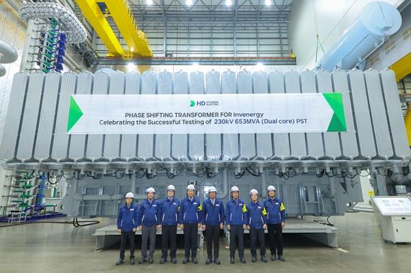HD현대의 전력기기·에너지솔루션 계열사인 HD현대일렉트릭은 최근 230킬로볼트(kV)급 653MVA 위상조정 변압기의 최종 승인시험을 마쳤다고 2일 밝혔다. 이 초대형 특수 변압기는 미국 최대의 재생에너지 발전 기업인 ‘인베너지(Invenergy)’가 뉴욕주에 건설 중인 풍력발전단지에 오는 8월까지 공급될 예정이다.