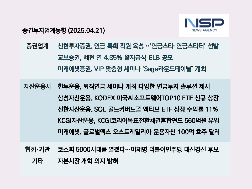 NSP통신, 설희 기자, 2025-04-21 18:00 KRX9 R0
