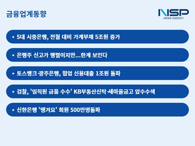 ◆5대 시중은행, 전월 대비 가계부채 5조원 증가