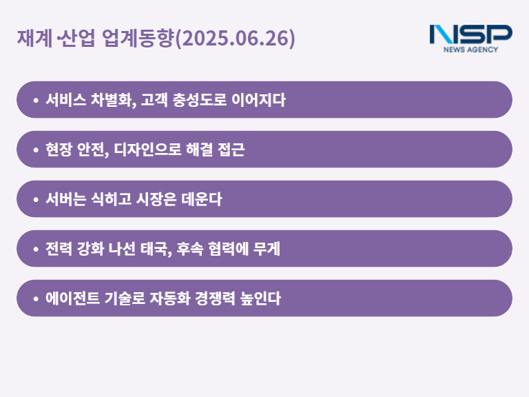 (서울=NSP통신) 최아랑 기자 = 산업 전환기에 발맞춰 각 분야에서 기술 차별화와 협업 전략이 분주하게 펼쳐지고 있다. 고객 경험을 고도화하고 친환경 기술로 신시장을 개척하고 디자인으로 작업 안전을 높이고 글로벌 협력으로 전력을 키우는가 하면 자동화 기술로 업무 효율을 끌어올리는 흐름 역시 뚜렷하다.