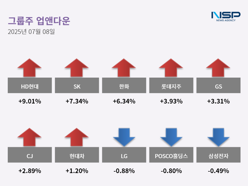 (서울=NSP통신) 최아랑 기자 = 8일 코스피(+1.81%), 코스닥(+0.74%)은 상승했다. 이 가운데 가장 큰 변동을 보인 종목은 가장 큰 변동을 보인 종목은 가장 큰 변동을 보인 종목은 HD현대다. HD현대는 9.01%(11만100원) 올라 13만4300원에 마감됐다.