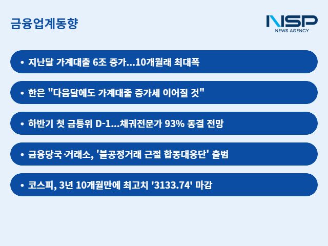 (서울=NSP통신) 강수인 기자 = 3단계 스트레스DSR(총부채원리금상환비율) 시행을 앞두고 지난달 은행권 가계대출이 6조 이상 가파르게 올랐다. 이같은 상황에 미국의 관세 폭탄, 부동산 시장 불안정 등으로 오는 10일 한국은행 금융통화위원회에서 기준금리를 또 한 번 묶어갈 것이란 전망에 힘이 실린다.