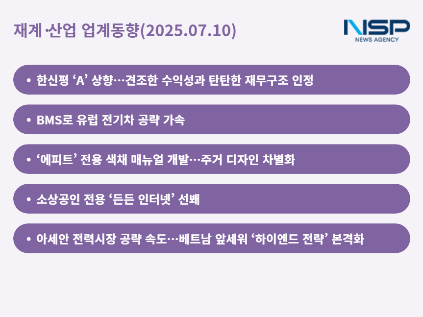 (서울=NSP통신) 최아랑 기자 = 국내 주요 기업들이 기술 인증, 신용등급 상향, 맞춤형 서비스 등 차별화된 전략으로 하반기 성장 드라이브를 본격화하고 있다. 전력·소재·통신 등 핵심 산업을 중심으로 수익성과 안정성을 동시에 확보해 시장 신뢰를 높이고 해외 공략에도 속도를 내는 분위기다.