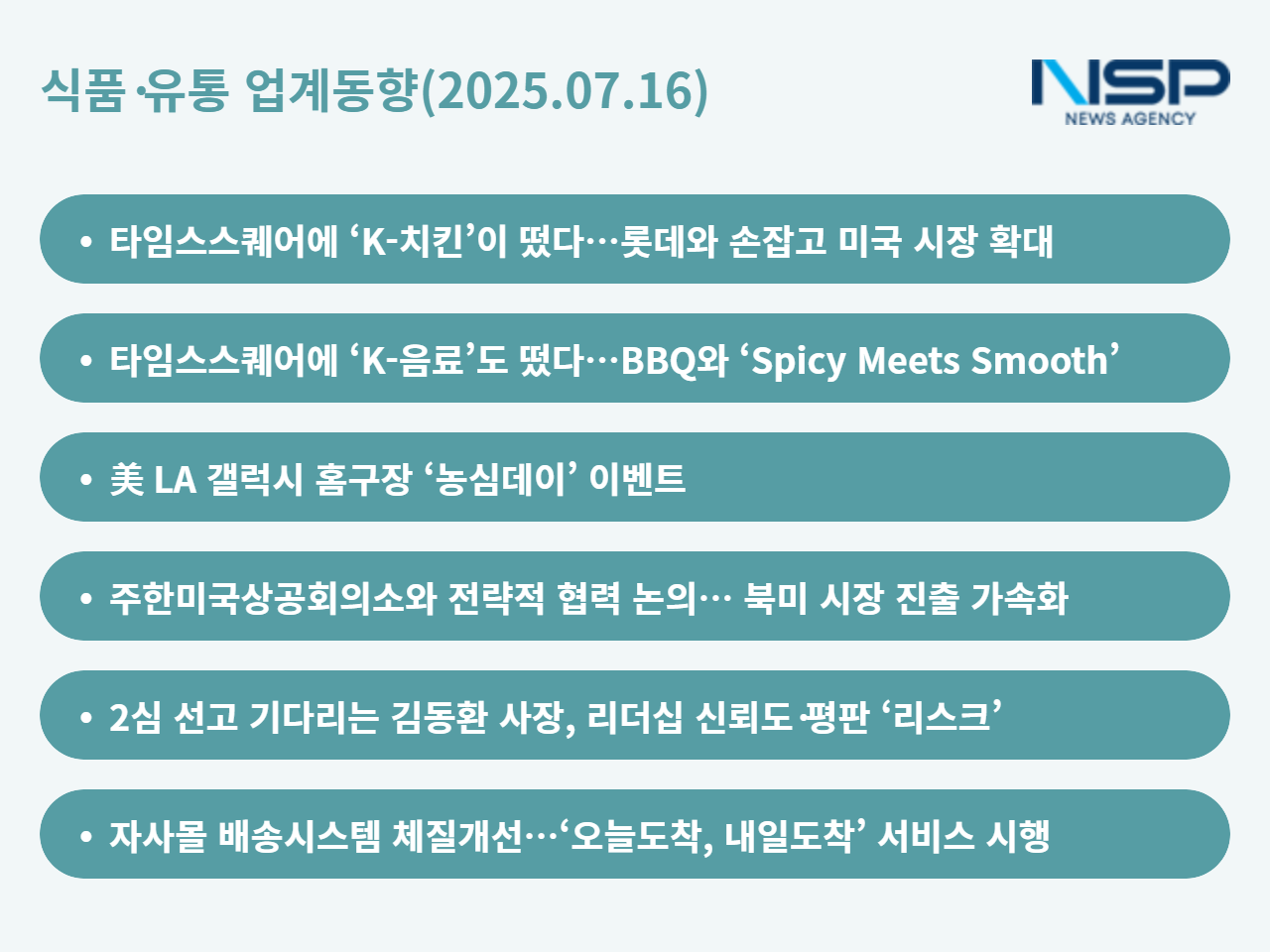 (서울=NSP통신) 옥한빈 기자 = 오늘(16일) 업계는 미국시장 진출 및 확대의 꿈이 가득해보였다. 제너시스BBQ와 롯데칠성음료는 손을 맞잡고 뉴욕의 상징 타임스퀘어 앞에서 ‘Spicy Meets Smooth : BBQ × Milkis’행사를 선보였다. 농심은 이에 질세라 LA로 건너가 ‘베컴’과 ‘홍명보’로 유명한 프로 축구팀 LA갤럭시의 홈구장에서 ‘Nongshim Night’를 열었다. 세라젬은 비록 현지를 가진 못했지만 강남구 역삼동 센터필드 서울타운에서 주한미국상공회의소 제임스 김 회장 겸 대표이사와 공식적인 미팅을 통해 북미진출에 관한 논의를 진행했다. 한편 내일 오전 10시에는 빙그레 김동환 사장의 경찰관 폭행 관련 법원 항소심 선고가 진행된다. 정권 교체 이후 더욱 민생과 공정이 강조되는 시기에 진행되는 사안이라 더욱 주목을 받는 상황. 이에 과연 기업명처럼 ‘빙그레’ 웃을 수 있을지 지켜봐야 한다.