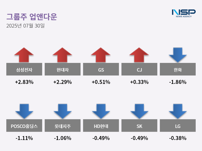 SK하이닉스와 CJ는 각각 0.38%(1000원), 0.33%(500원) 상승해 26만3500원, 15만2900원에 마감됐다.