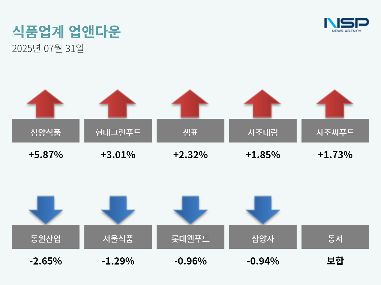 동서, CJ제일제당, 교촌에프앤비 등은 보합세를 유지했다.