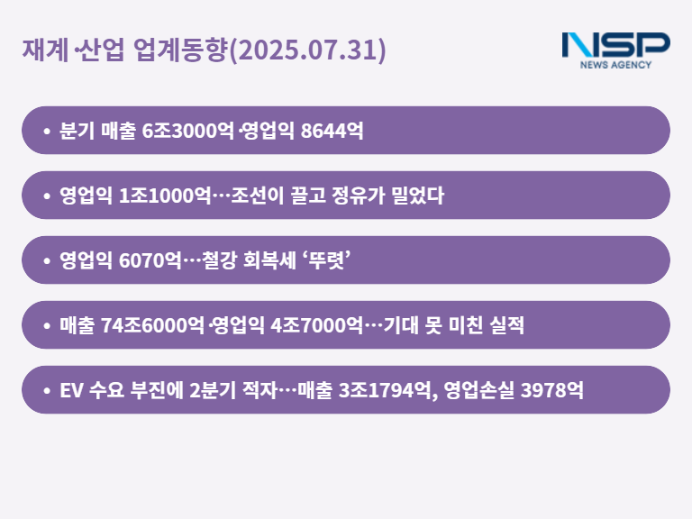 포스코홀딩스는 2분기 매출 17조5420억원, 영업이익 6070억원을 기록해 전분기 대비 회복세를 이어갔다. 철강 부문이 캐시카우 역할을 톡톡히 해냈지만 2차전지소재 사업의 이익 기여는 제한적이었다. 포스코퓨처엠은 환율 부담과 일회성 비용으로 주춤했다.