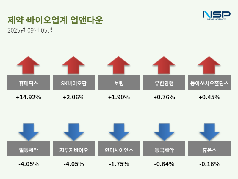대웅제약은 전거래일 대비 1.55%(2200원) 상승해 14만4300원으로 장을 마쳤고 휴온스글로벌 은 0.90%(400원) 상승해 4만4850원으로 장을 마감했다.
