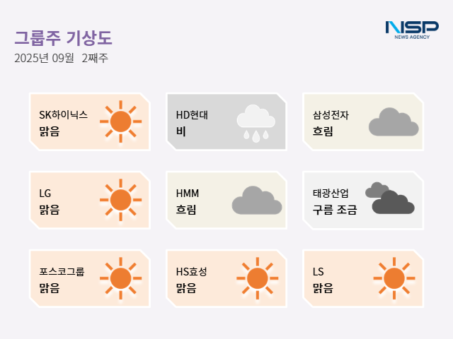 (서울=NSP통신) 최아랑 기자 = 이번 주 주요 기업들은 기술 혁신과 글로벌 시장 공략에 속도를 내고 전반적으로 ‘맑음’ 흐름을 이어갔다. SK하이닉스는 HBM4와 모바일 낸드 솔루션 ZUFS 4.1 양산을 통해 AI 메모리 경쟁력을 강화했고 LS그룹은 미국 전력망 시장 진출과 일자리 창출로 기업 경쟁력과 사회적 가치 모두를 확대했다. 반면 태광산업은 교환사채 발행 가처분 기각으로 경영 정당성을 확보했으나 신사업 추진 과정과 소액주주 관련 리스크는 여전히 변수로 남아 있다.