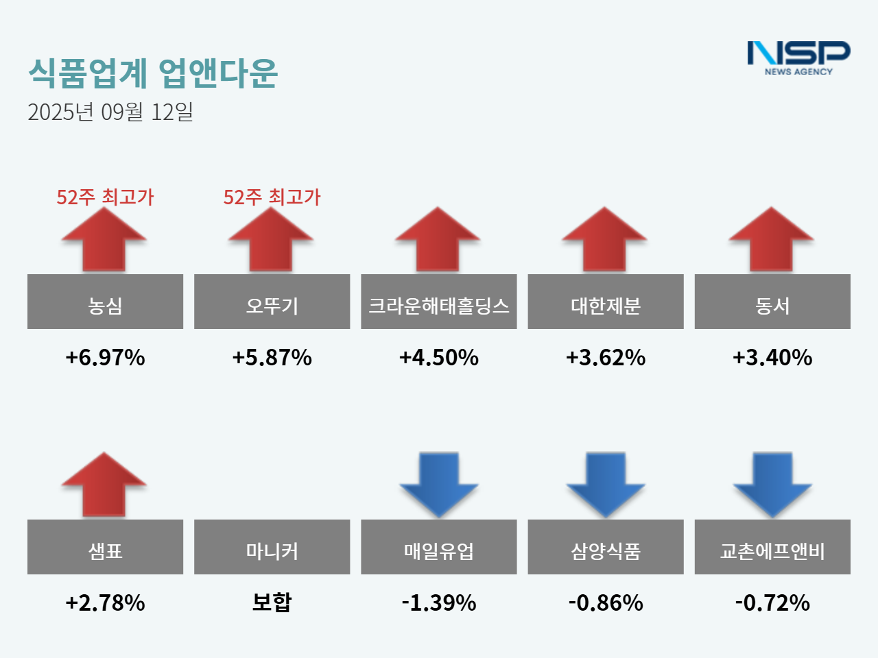 마니커, 윙입푸드 등은 보합으로 장을 끝냈다.