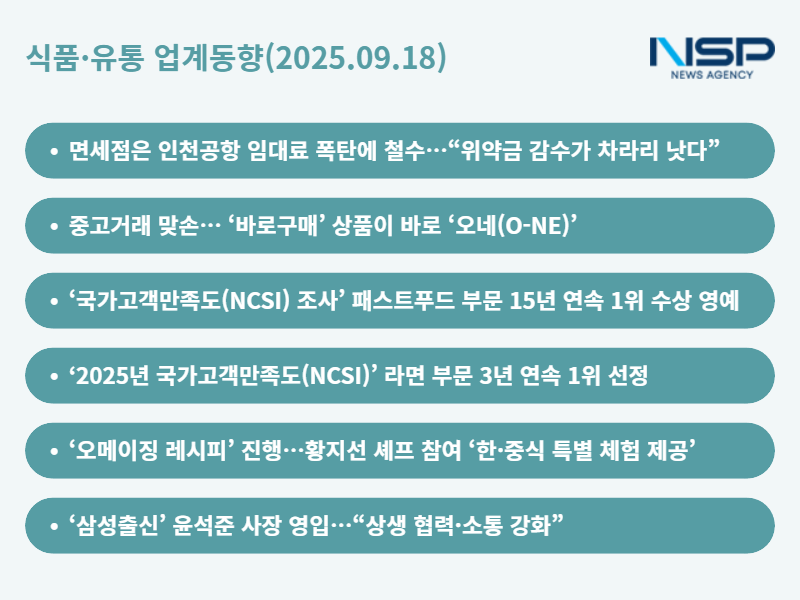 (서울=NSP통신) 옥한빈 기자 = 작별인사 1900억 원. 신라면세점이 인천공항을 떠나며 남긴 건 면세점 영광 대신 거대한 위약금 영수증뿐이었다. 반면 CJ대한통운과 당근마켓은 클릭 몇 번으로 중고거래까지 ‘로켓배송’처럼 웃음을 배달하는 동맹을 맺었다. 소비자 만족도 무대에선 롯데리아와 오뚜기가 각각 버거·라면 왕좌를 지키며 “고객 충성도는 곧 국력”을 외쳤고 아워홈은 오뚜기와 손잡고 사내식당에 오메이징 레시피를 선보였다. 배달의민족은 삼성 출신 윤석준 사장을 영입해 ‘배민 2.0’이라는 새 간판을 걸고 상생과 브랜딩 강화에 나선다.