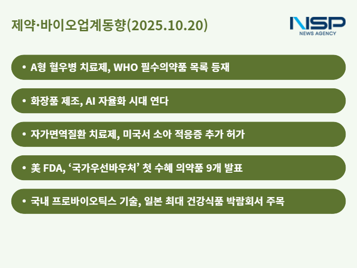 (서울=NSP통신) 정송이 기자 = 국내 제약·바이오 기업들의 글로벌 시장 진출이 가속화되고 있다. 혈우병 치료제와 바이오시밀러가 WHO·FDA 승인을 잇따라 획득하는 가운데 화장품 AI 제조 시스템 구축과 프로바이오틱스 해외 진출도 본격화됐다.