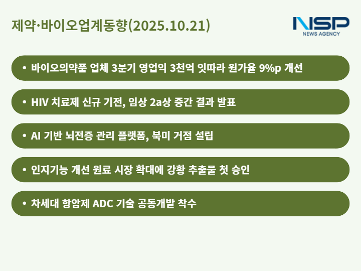 (서울=NSP통신) 정송이 기자 = 국내 제약바이오 기업들이 실적 개선과 함께 신약 개발 및 디지털 헬스케어 진출을 본격화하고 있다. 바이오시밀러 업체들은 수익성 강화를 기반으로 혁신 신약과 AI 기반 플랫폼 사업으로 포트폴리오를 확대 중이다.