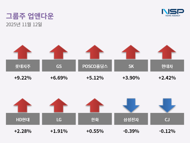 롯데지주와 GS는 각각 9.22%(2850원), 6.69%(3800원) 상승해 3만3750원과 6만600원에 장을 마쳤다.