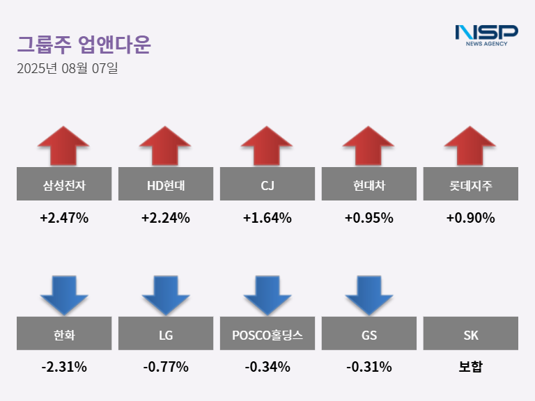HD현대와 CJ는 각각 2.24%(3000원), 1.64%(2500원) 상승해 13만6700원, 15만5200원에 마감됐다.