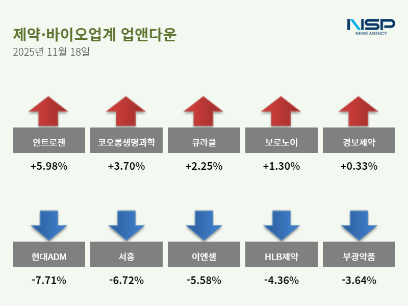 안트로젠은 전거래일 대비 5.98%(1250원) 올라 2만2150원으로 장을 마쳤고 코오롱생명과학은 전거래일 대비 3.70%(1450원) 상승해 4만600원으로 장을 마감했다.