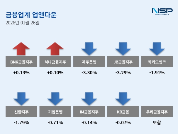 은행주 하락…BNK금융↑·제주은행↓