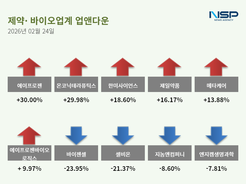 제약주 상승…에이프로젠↑· 바이젠셀↓
