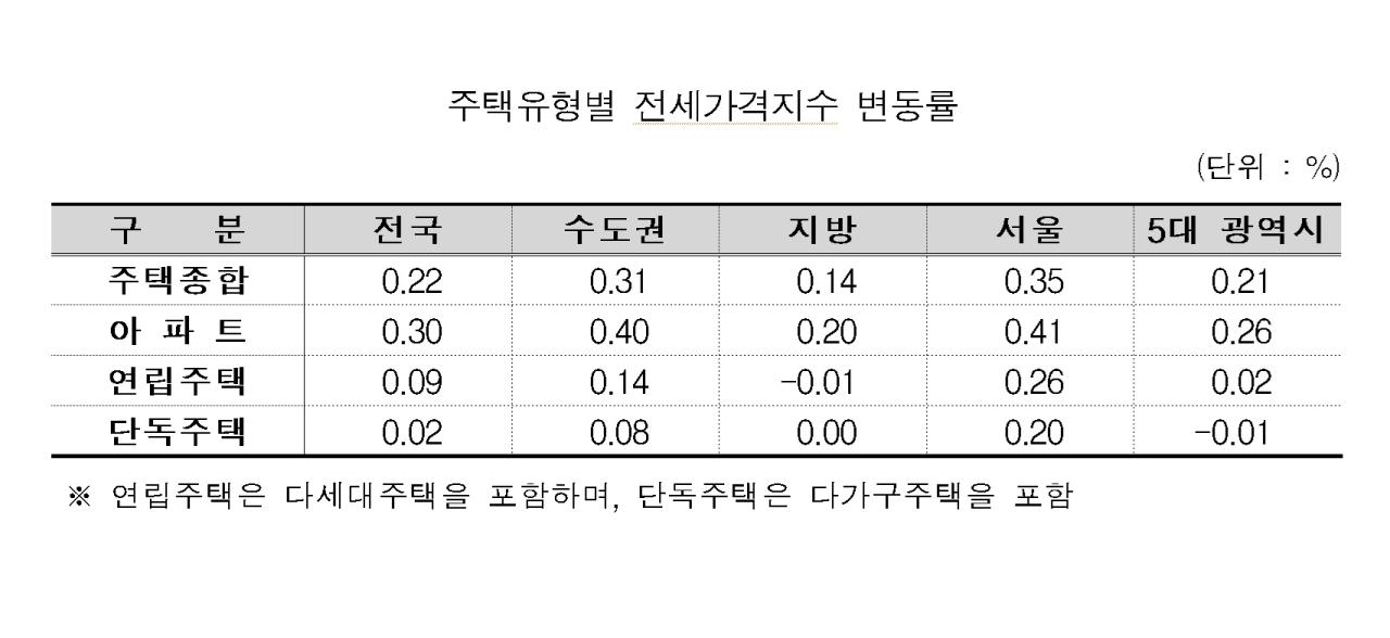 NSP통신-주택유형별 전세가격지수 변동률 표 한국부동산원