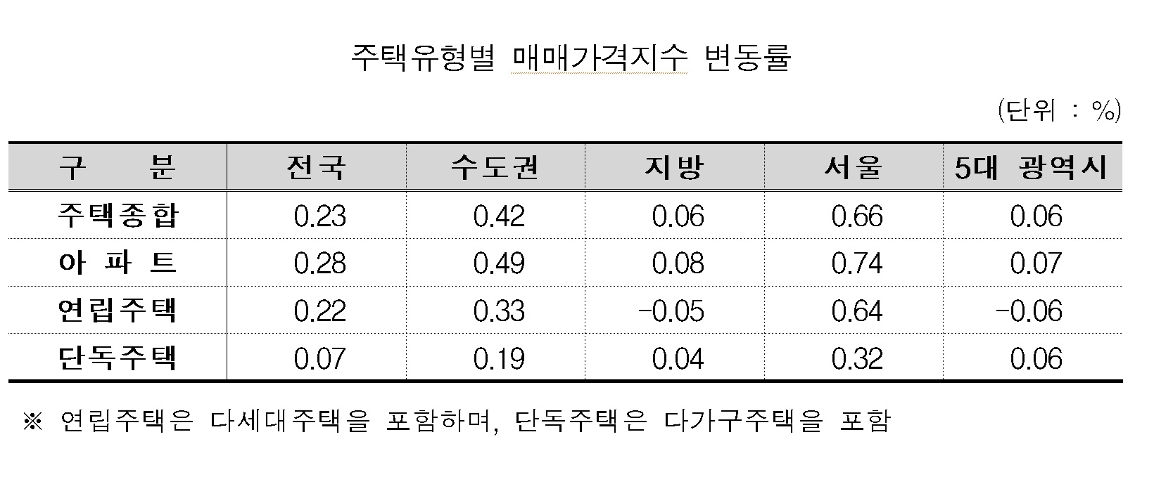 주택유형별 매매가격지수 변동률 (표 = 한국부동산원)
